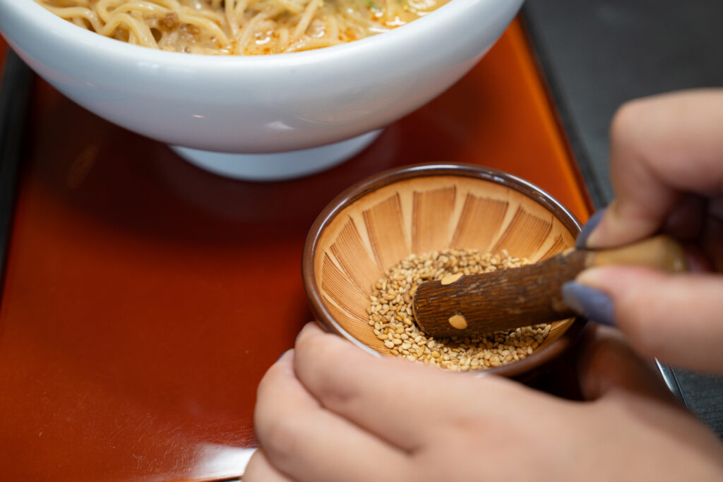 食べる直前に自分ですった胡麻を担々麺にかけていただきます