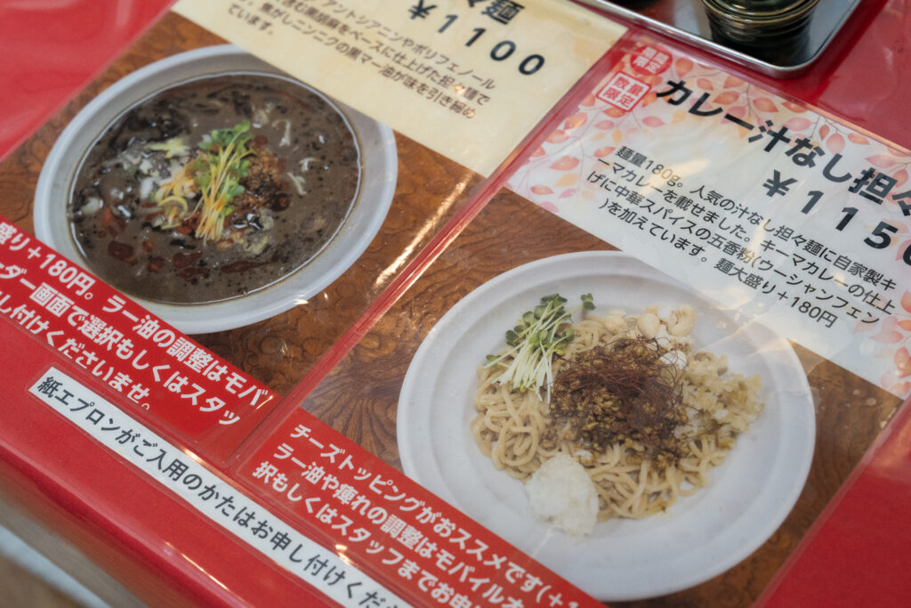 1番人気は店の名前がついている發巳担々麺で、2番人気は麻辣担々麺ですね。