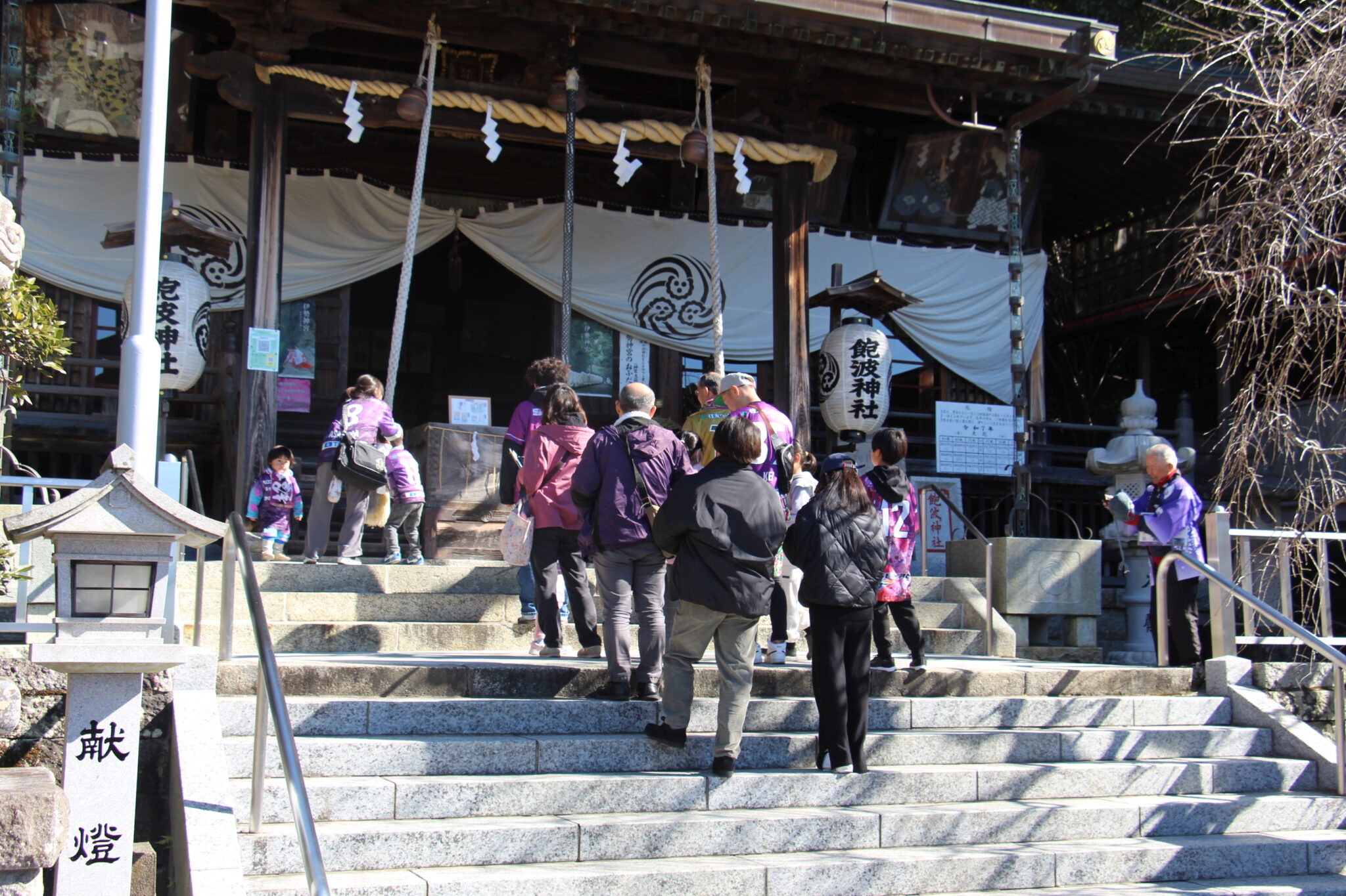 ①チェックポイントである「飽波(あくなみ)神社」で勝利を願う