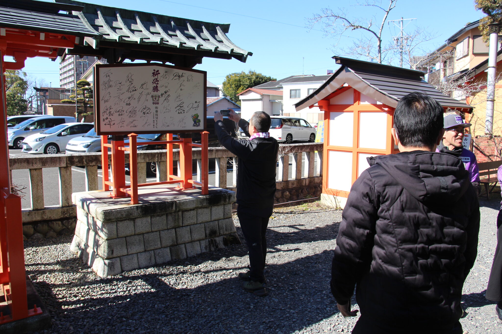チェックポイントの「飽波神社」は毎年藤枝MYFCの選手やスタッフが必勝祈願を行う神社です。