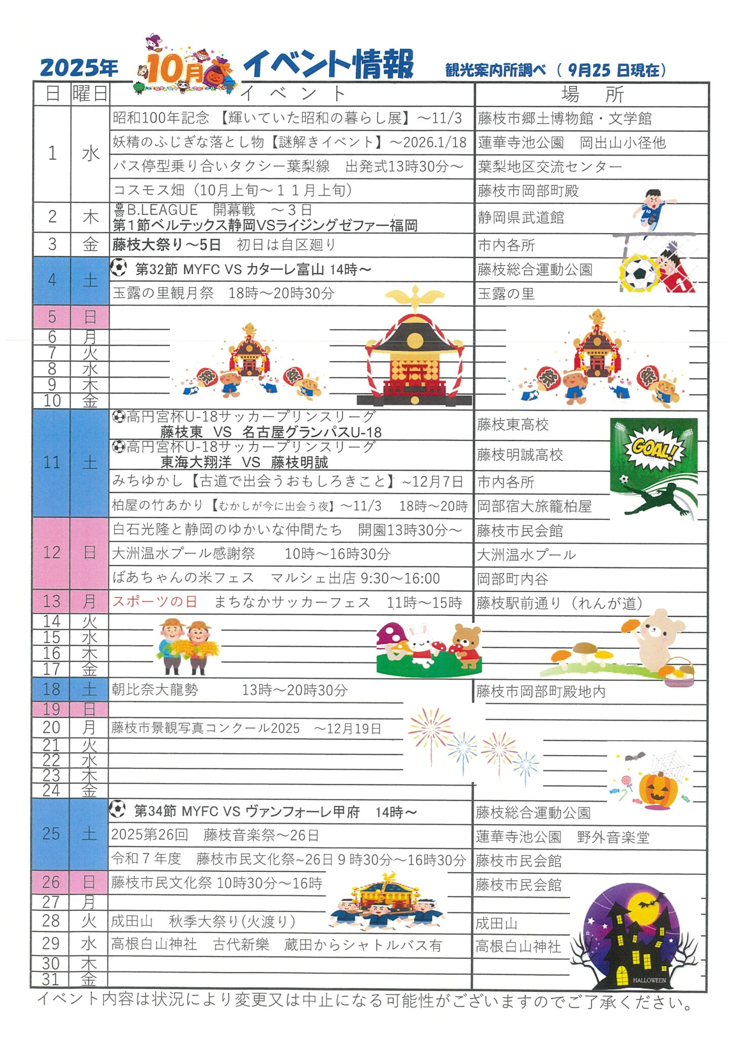 現在実施が決定しているイベントも状況により変更になる可能性がありますので、必ず事前にご確認のうえお出掛けください。