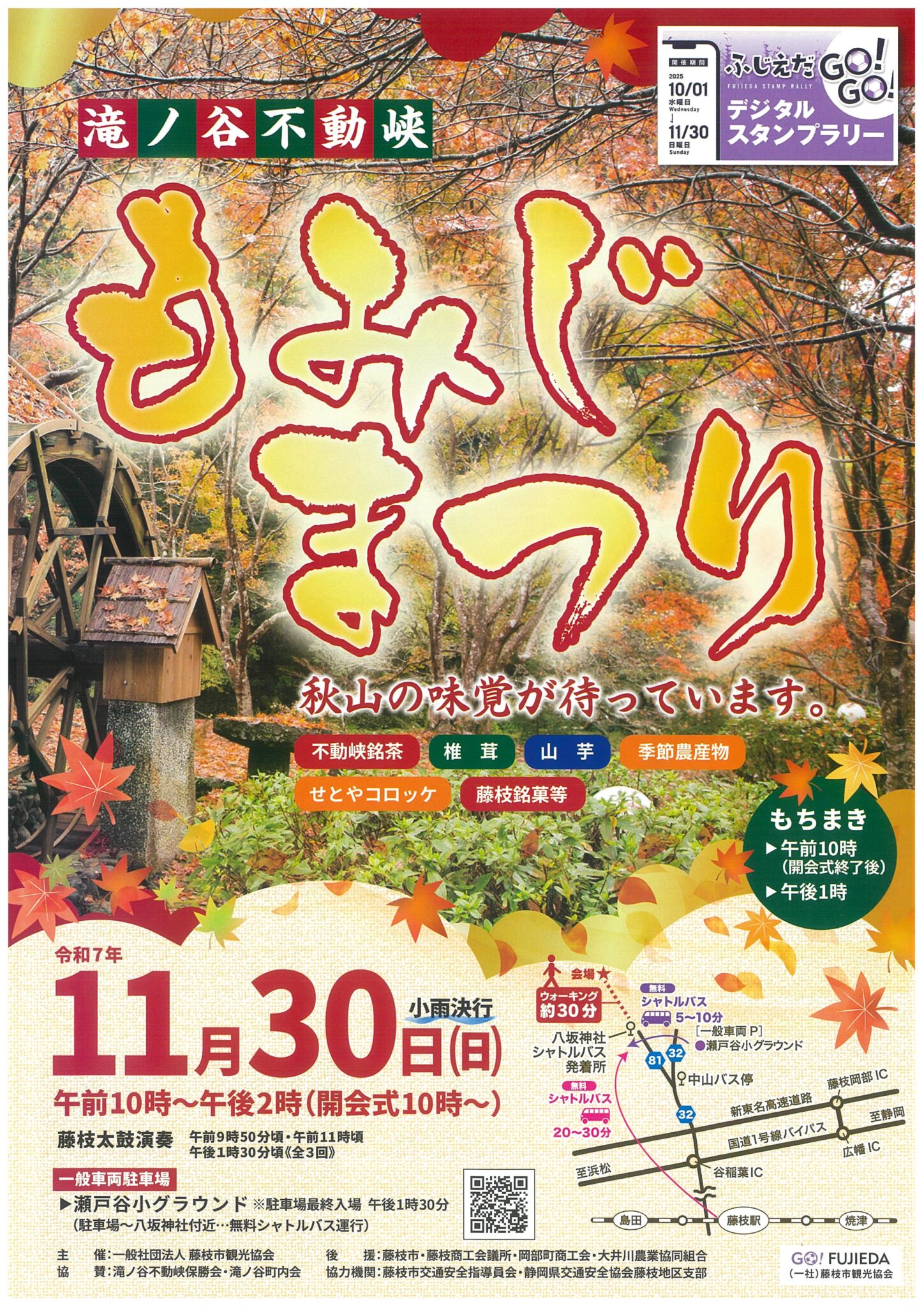 藤枝市の紅葉の名所である滝ノ谷不動峡にて「滝ノ谷不動峡 もみじまつり」を11月末に開催します。